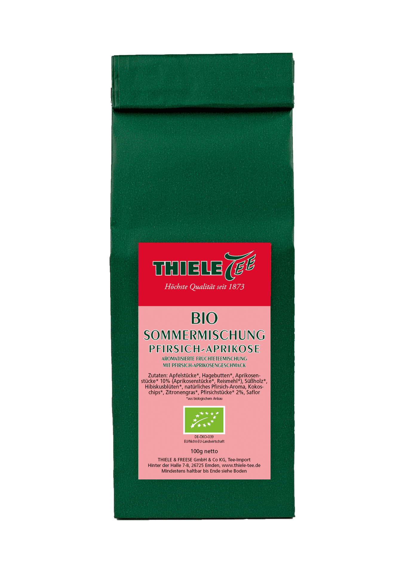 Entdecken Sie die erfrischende Komposition von Sommerfrüchten mit unserer Bio Sommermischung Pfirsich Aprikose. Diese köstliche Kreation entführt Sie mit jedem Schluck in die Welt des Sommers und verbindet die süßen Aromen von Pfirsich und Aprikose zu einem unvergleichlichen Geschmackserlebnis.