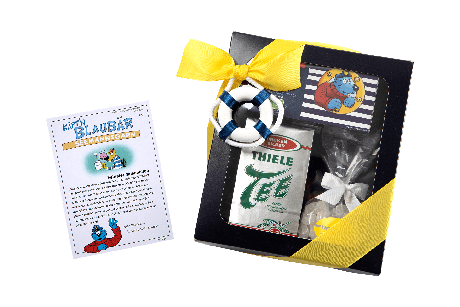 Maritimes Teepräsent mit Broken Silber, Käpt’n Blaubär Früchtetee und Kandis