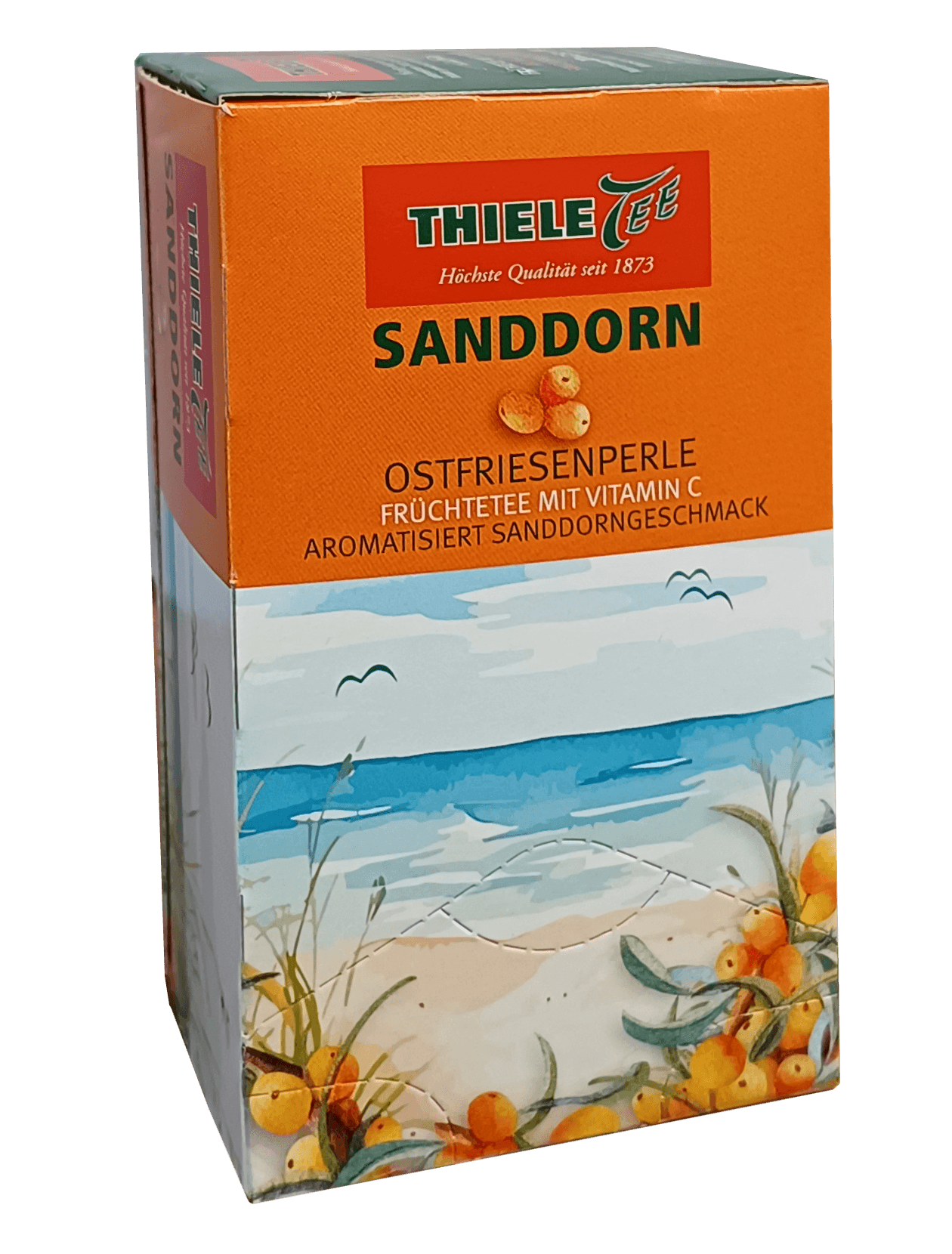 Der Sanddorn Früchtetee Ostfriesenperle fängt die Frische der nordischen Küste in jeder Tasse ein. Fruchtige Äpfel, leuchtender Hibiskus und ausgewählte Beeren verbinden sich mit dem charakteristischen, leicht herben Geschmack des Sanddorns zu einem harmonischen Geschmackserlebnis.