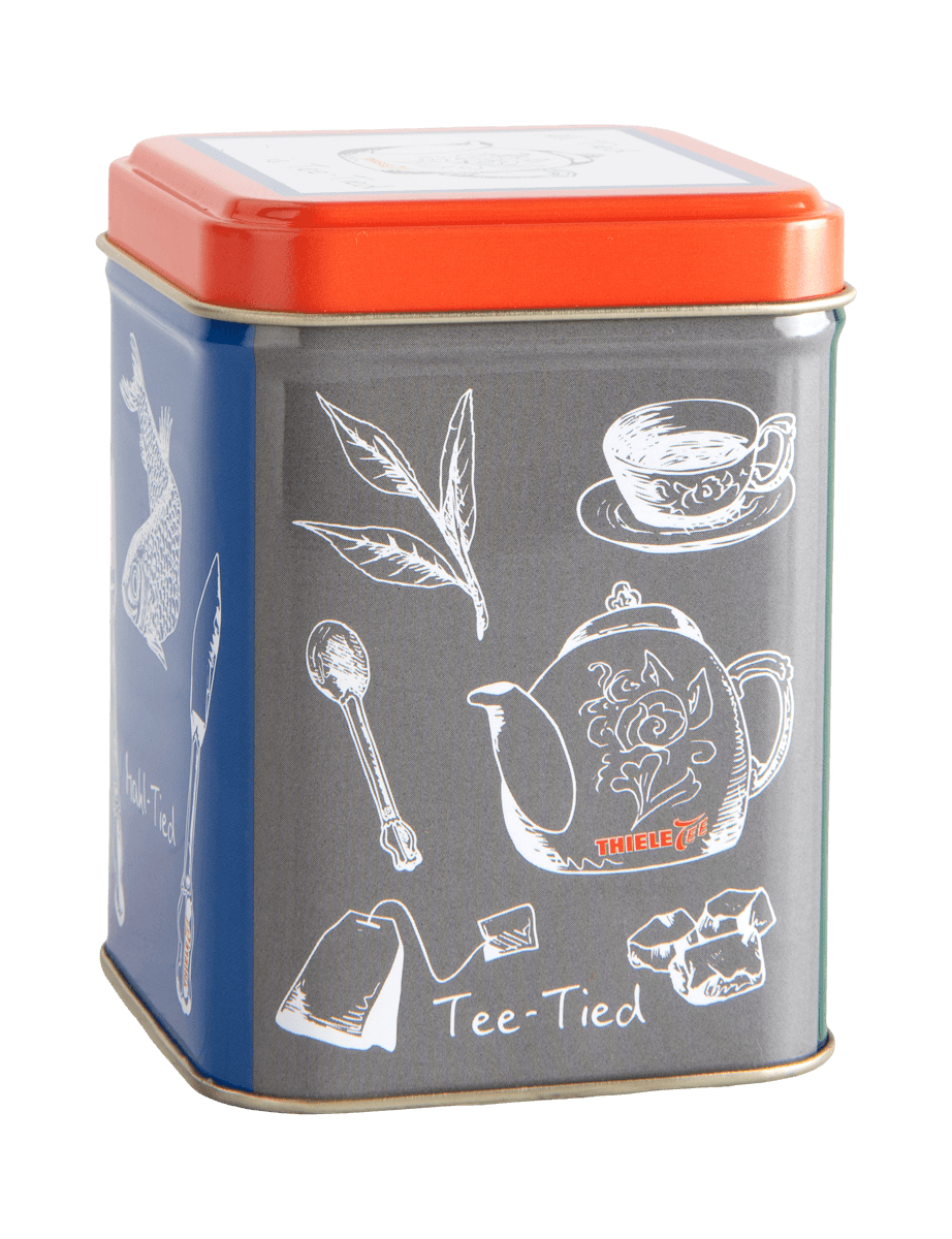 Stilvolle Dose „TEE Tied“ für ca. 100g Tee. Perfekt für die ostfriesische Teestunde – zum Befüllen nach Geschmack.