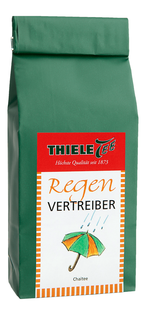 Der „REGEN Vertreiber Chaitee“ verbindet Grünen und Schwarzen Tee mit aromatischen Gewürzen wie Zimt, Orangenschalen, Cardamomsaat, Cardamomschalen und Nelken. Daraus entsteht eine kraftvolle Mischung mit feinwürzigem Charakter und fruchtiger Nuance.