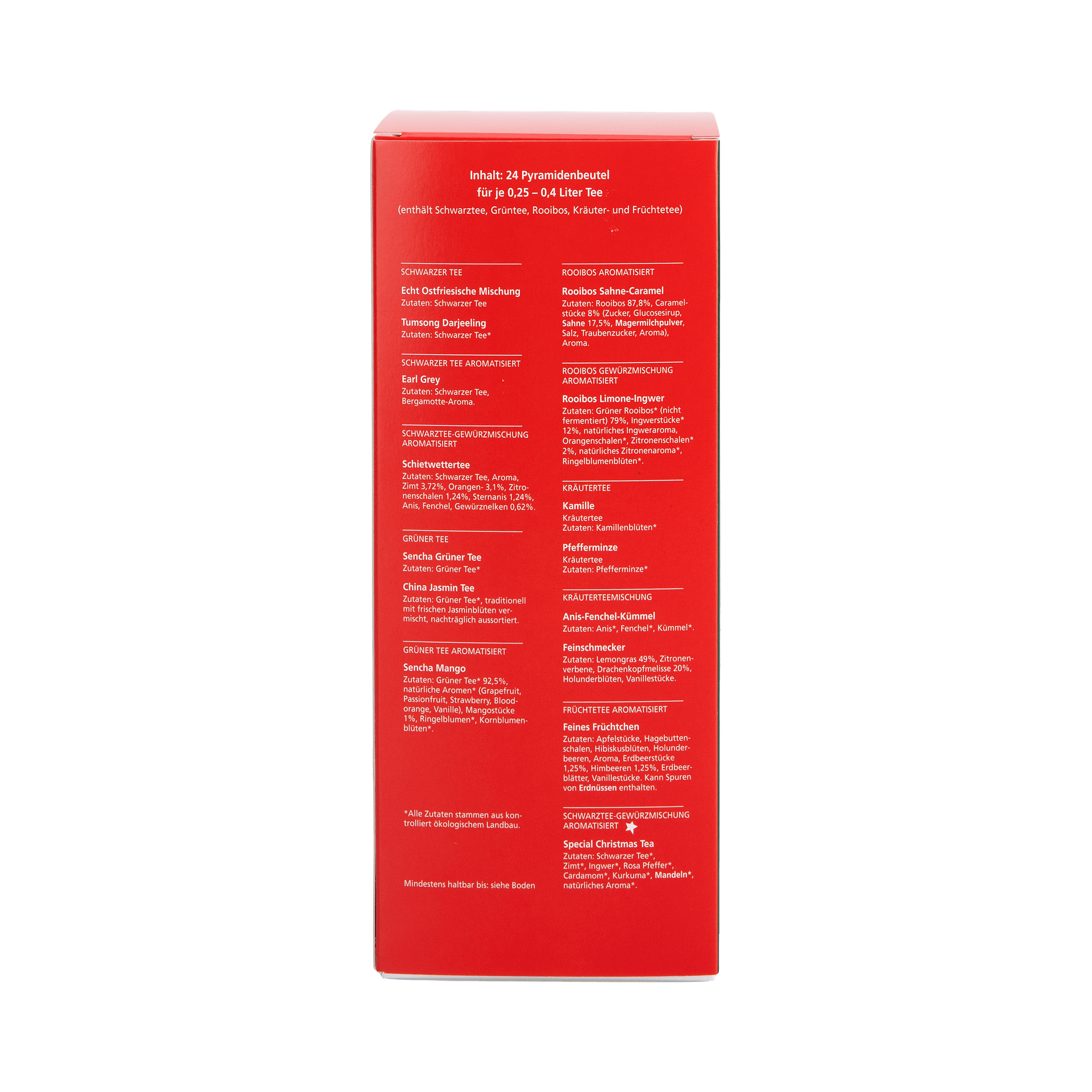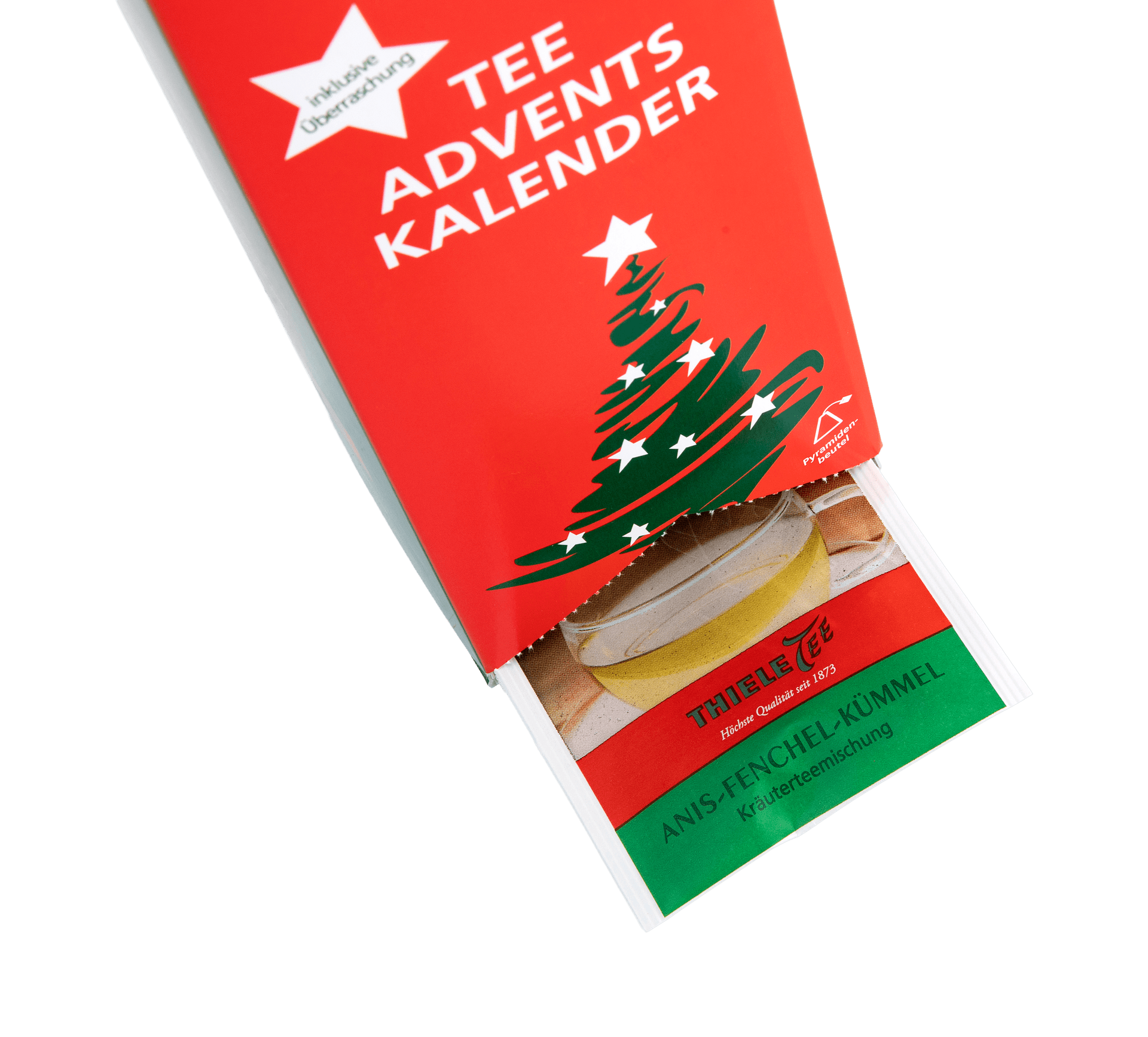 Mit 14 sorgfältig ausgewählten Tees bietet dieser Kalender abwechslungsreiche Genussmomente – von klassischen Schwarztees bis zu feinen Kräuter- und Früchtetees. Ein stilvolles Geschenk für Teeliebhaber und alle, die die Adventszeit gern mit einer wohltuenden Tasse THIELE TEE genießen.