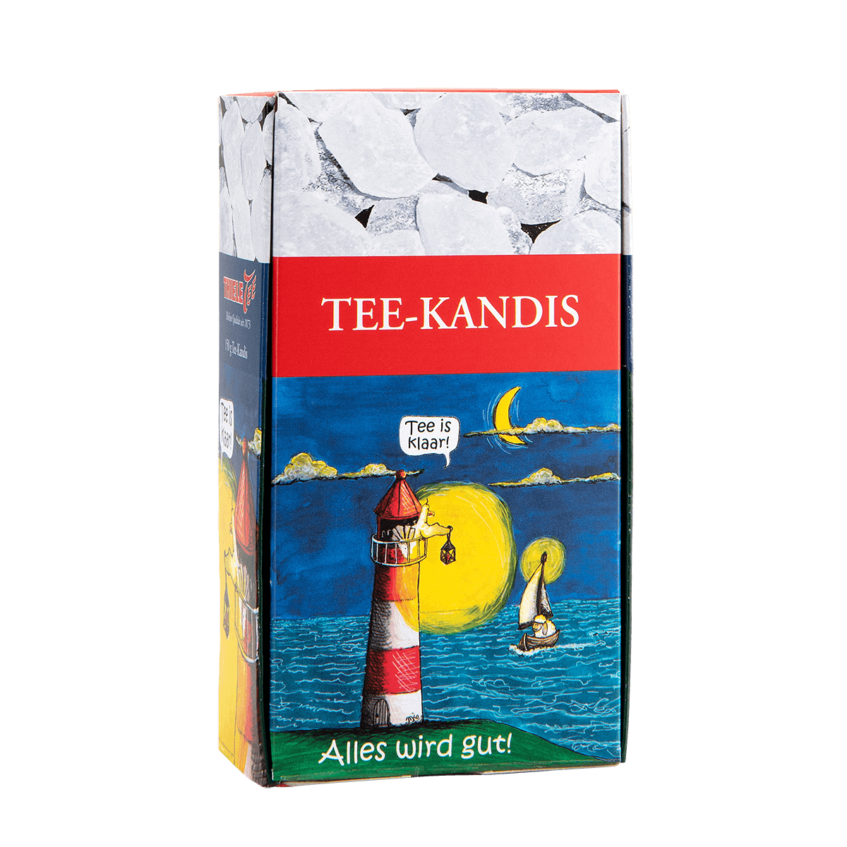 Feiner Kandis, in Ostfriesland „Kluntje“ genannt, im Motiv „Alles wird gut“. Ein süßer Begleiter für die ostfriesische Teezeremonie und ein charmantes kleines Geschenk.