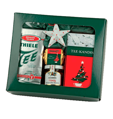 Ein Präsent, das den Zauber der Weihnachtszeit einfängt: „Es leuchtet ein Stern“ vereint 125g THIELE TEE Broken Silber – den Klassiker unter den Ostfriesentees – mit 150g feinem Kandis, 50g goldenem Adventshonig und 25g zartem Nougat-Weihnachtshappen. Ein dekorativer Metallstern rundet das liebevoll zusammengestellte Set harmonisch ab.