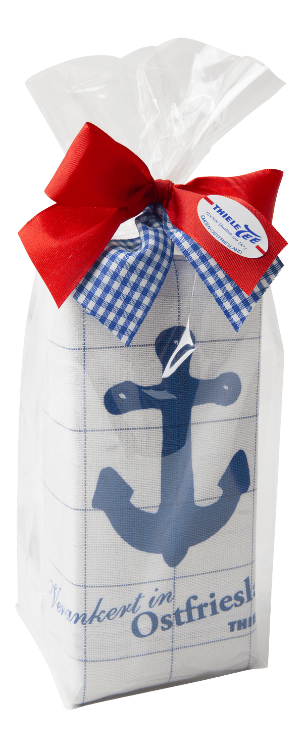 „Verankert“ steht für echten Teegenuss aus Ostfriesland. Enthalten sind 500g Broken Silber – der Klassiker unter den Ostfriesentees – stilvoll eingeschlagen in ein THIELE TEE Geschirrtuch Verankert in Ostfriesland und verpackt in Cellophan mit Schleife.